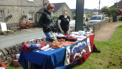 Up early on the Saturday we set out once again into the beautiful July sunshine, showers, sunshine, showers…but after tying our woollen murray and blue table covers down, with murray and blue ribbon, attaching the society banner to the front of the stall and readying our trusty tarp to protect the table during any unfortuitous weather, we set up our informative leaflets, booklets and many other wonderful items for sale that were generously donated by kind members and their friends.