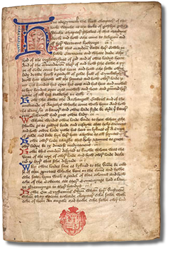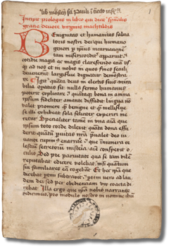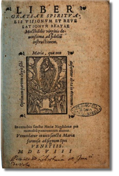 It is one of only two known Middle English translations1 of the original Latin work "Liber specialis gratiae", which was written by Mechtild of Hackeborn, St Mechtild, in the latter part of the 13th century. Neither of the Middle English copies are available online, the second being held in Oxford's Bodleian Library (Bodley MS 220), although the entry for the copy found in the British Library does include images of two of its pages: